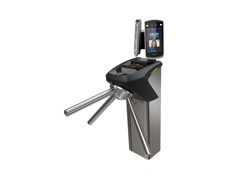 A Control iD desenvolveu uma catraca revolucionária capaz de comportar até dois iDFaces Max instalados, que controlam tanto a entrada como a saída de pessoas através da tecnologia de reconhecimento facial.