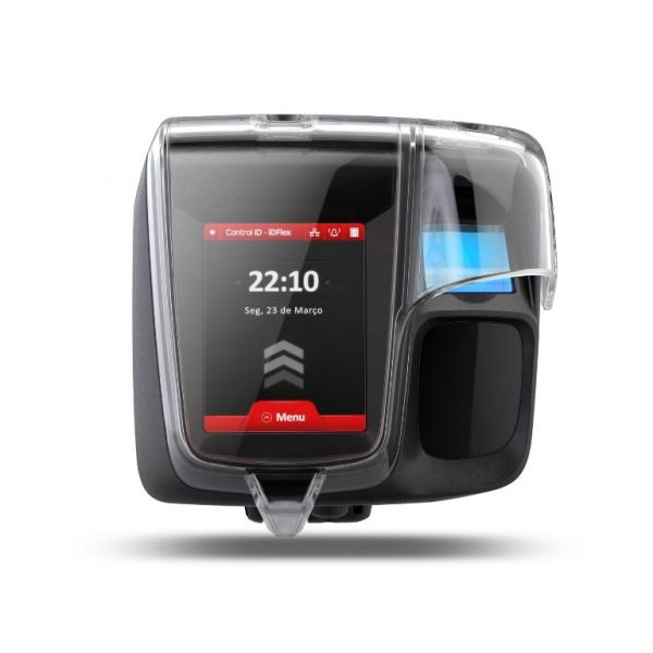 Além disso, o dispositivo apresenta um display touchscreen de 3,5” e um software web embarcado que facilitam a gestão das regras de acesso e visualização de relatórios.